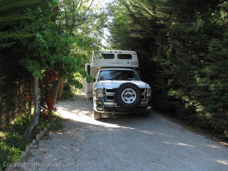 Just near the town of El Molle we found a nice little campground called Tikal with sheltered camp sites set among pine and eucalyptus trees. Water, electricity, toilets and hot showers in the morning.