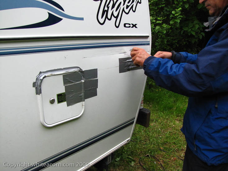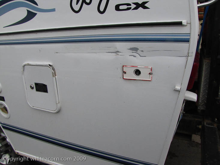 We got off to a bad start today. On the exit from our hotel parking place we had to go through a narrow gate. The gate posts were about 3 inches wider than the Tiger. But the driveway was not level so part way through the gate the Tiger tilted and bumped into the left hand post causing some damage to the house body and damaging the plastic panel where we put in fuel.