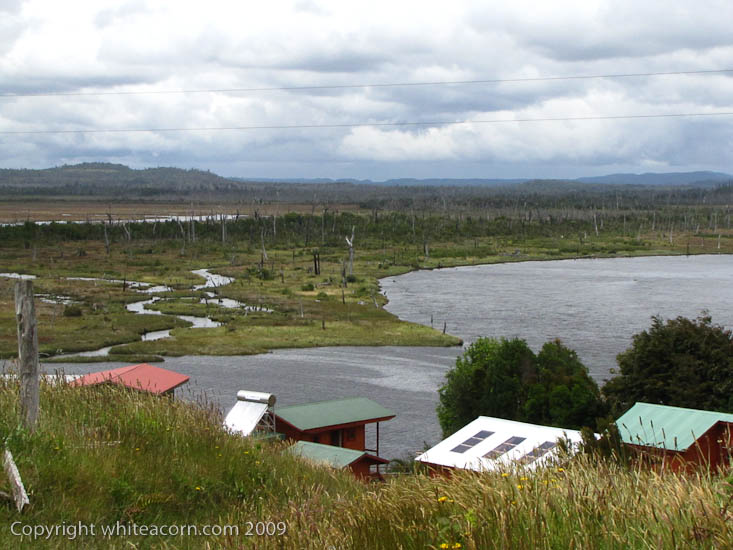 Continuing south we took a good gravel road to Chepu on the western coast. The attraction is the confluence of three rivers, and some sunken forest (an earth quake caused the ground to sink over a large area and resulted in the forest being swamped by salt water). We met a couple of Australians traveling around in a Chilean registered little pickup.