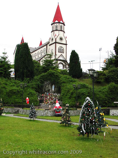 Today the four of us (Nina and I, plus our friends Bernie and Sam) drove into Puerto Varas about 50 kms from the campground to do a bit of sightseeing. The town has a number of old German style buildings that the guide book recommended; they were pretty run down and needing some maintenance. Another example of Chilean tourism infrastructure in need of repair. We took the opportunity to have lunch at a Mexican restaurant.