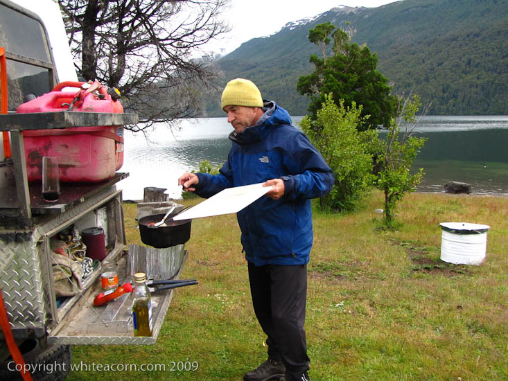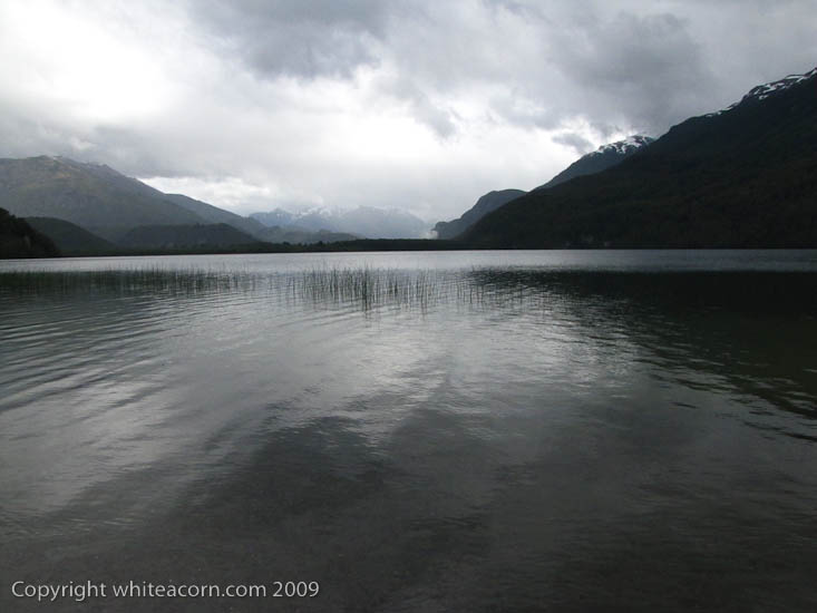 We camped at Tres Bahias camping ground midway down Lago Rivadavia in Parque Nacional Los Alerces. Access was via a 1.4 km narrow, soft, and at times steep little road. We were right next to the lake. There was an amenities block with toilets and hot showers no electricity.