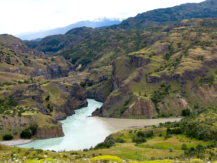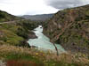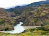 After El Maiten we followed the shores of Lago Bertrand for a few kms to Puerto Bertrand and then the mighty Rio Baker. This river drains Lago Carrera and through it a huge area of Patagonia (26,487 square km). At this point in its travels it is relatively narrow, extremely fast, turquoise in color and as we would see over the next miles has cut some impressive canyons.