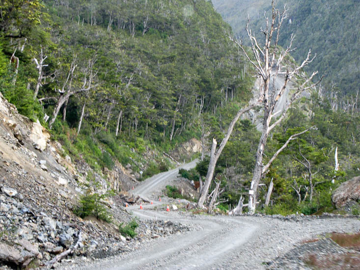 Before turning north we took a very narrow road to Bahia Bahamondez further south on the edge of Lago O'Higgins. The weather improved and produced some sun while we were on this road.