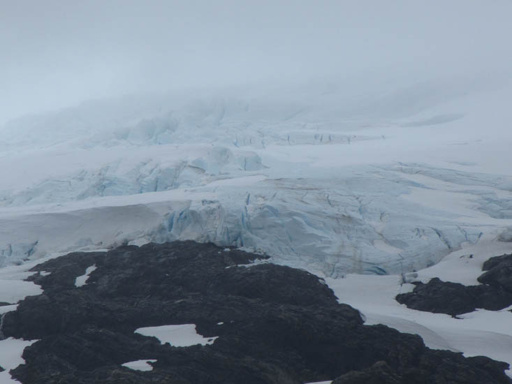 Because of the weather we only got glimpses of the mountains and the occasional ice field peeking over the rim, though even with our limited view the landscape left an impression of vastness and isolation. Just to emphasis the isolation during the day we saw maybe 6 other vehicles and almost that many cyclists.