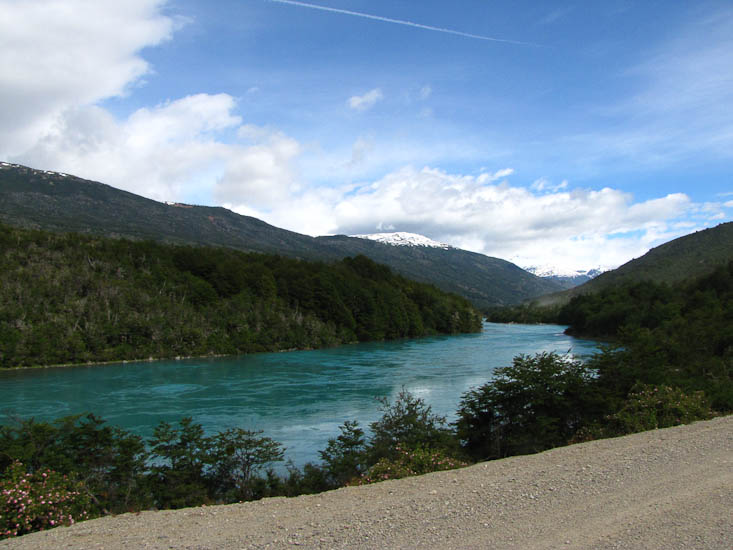We were greeted this morning by a clear sky and bright sun, what a treat. We continued North to the junction of highway 7 and the road to Chile Chico (highway 256). Along the way we said goodbye to the mighty Rio Baker and its turquoise waters, and Lago Bertrand. The Carretera Austral has been, despite the rain, a wonderful experience and we are sad to leave it.