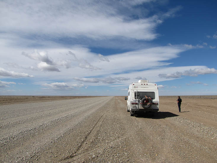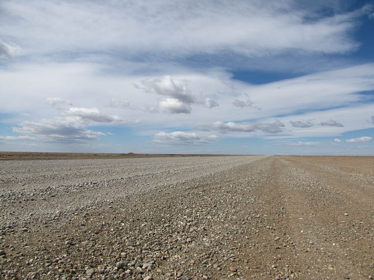 Late in the day, with the fuel level close to empty, we came to the town of Tres Lagos and after a fruitless search of this dusty little hamlet we found a lonely gas station just south of the town at the start of the pavement that would take us to the El Chalten turn off and into El Chalten. It was intriguing to us that the pavement stopped (or commenced depending on your point of view) 500 yards before the turn off to this town.