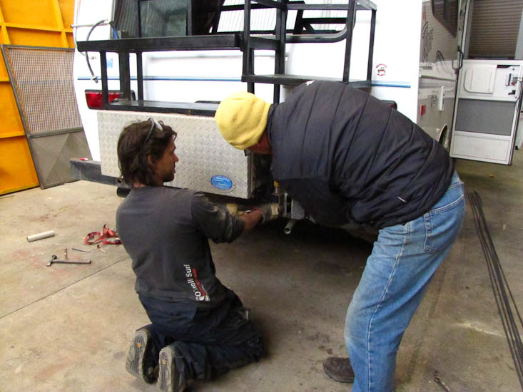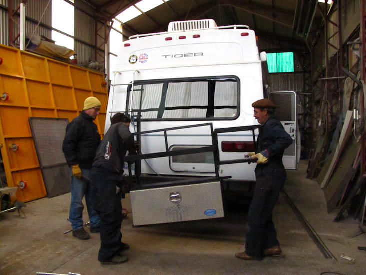 Nina went off almost immediately to visit a few museums and generally look around while I stayed with the vehicle; both to look after it (trust but verify) and also to make sure that we had a continuing common understanding of the job. As it turned out I had to change the plans a few times and finished up adding to the work during the course of the day. The owner and his off-sider worked on our job from 9:00 till 5:00. On reflection I am not entirely happy with the design for the extra fuel cans and may change it (again) somewhere down the way; but the quality of the work was great.