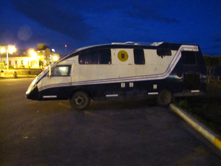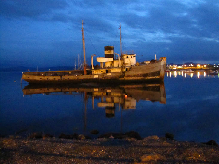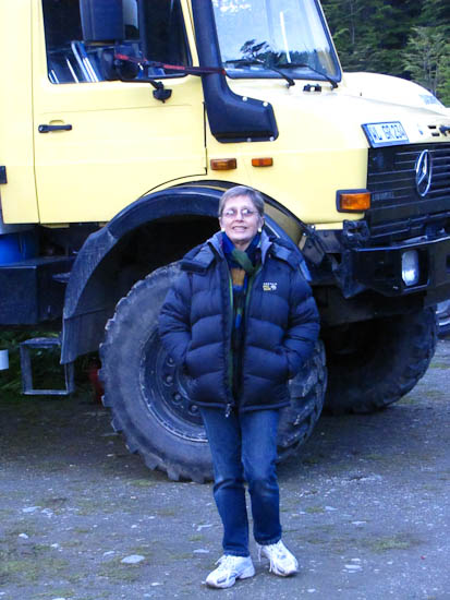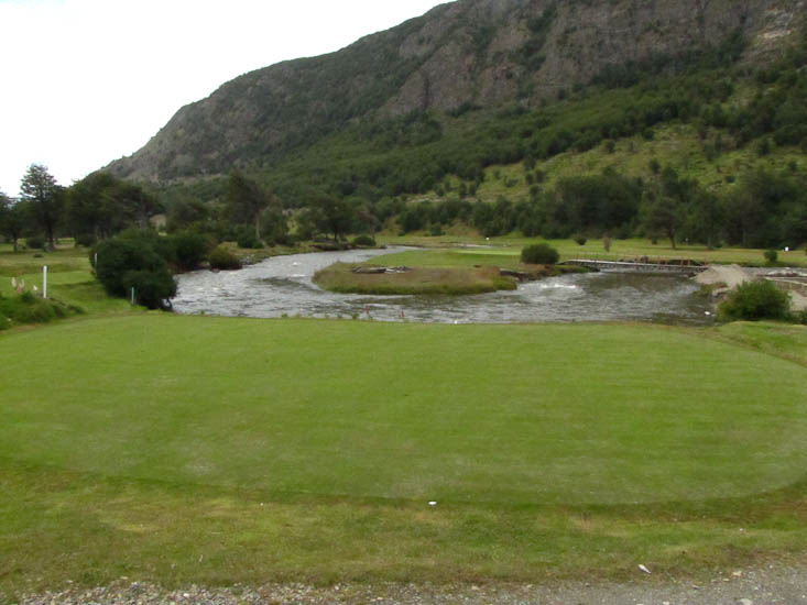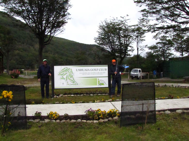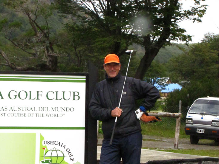 Today Bernie and I were carrying out a long threatened round of golf at the end of the world. We teed off for a 2 x 9 hole round in light rain, howling wind, with remnants of Tuesdays fresh snow still visible on the nearby mountains.