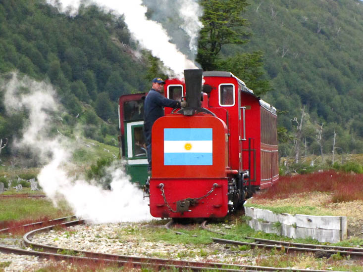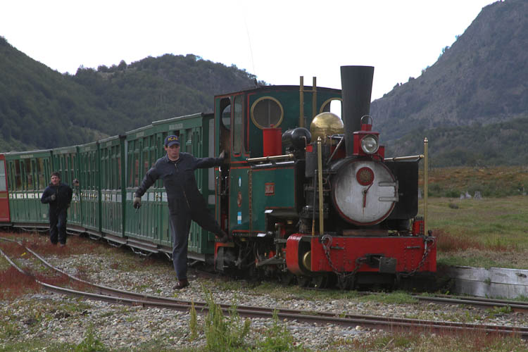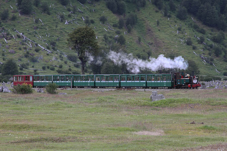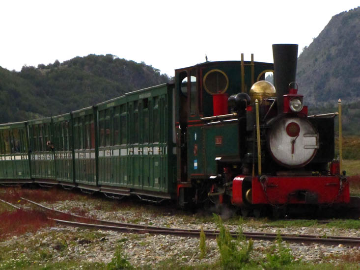 We stopped along the way to get some photos of The End of the World Train. This mini steam train - with we estimate a 24" gauge line - is now a tourist ride and attraction but was originally a real working train used to transport prisoners to and from their work. You see Ushuaia was, following Britain's lead with Australia, a prison settlement in its early days.
