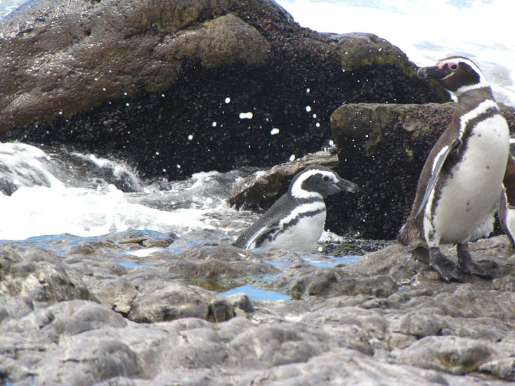 We gathered at the office of Darwin Expeditions and along with 15 or so other assorted tourists climbed into their large zodiac style boat for the rough 1 hour journey to Isla Pinguino. Along the way we got some views of sea lions resting on a small rock island.