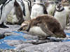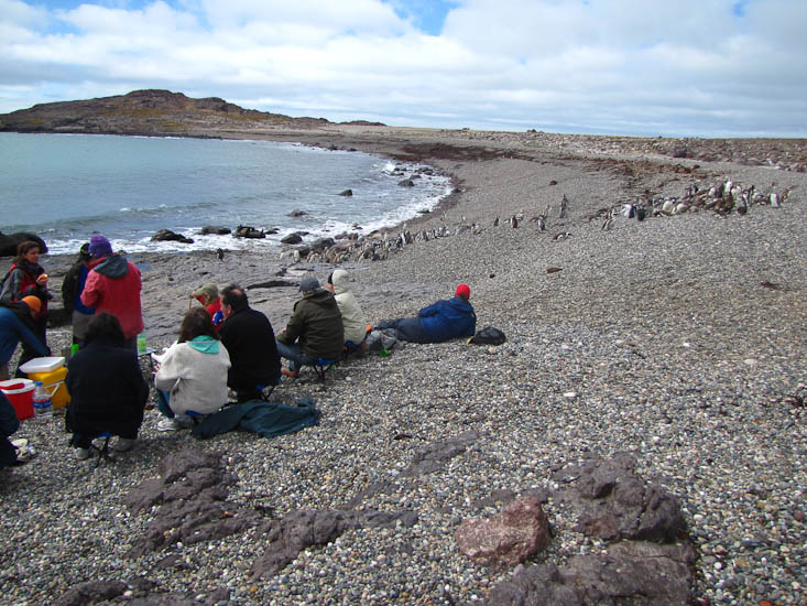 We spent from about 10:00 until 3:30 on the island, walking around looking at Magellanic Penguins of which there were many, then a large colony of rock hoppers, and finally a good sized colony of sea lions - many of them large males with big fur mains around their necks.