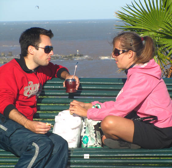 As we leave Uruguay I need to comment on a drink called Mate. This is a tea like beverage made in a special cup by pouring hot water over Mate leaves. We saw people drinking this in Argentina, and understand that southern Brazilians also drink it, but from what we have seen so far Uruguayans are the most obsessed with this drink. We have seen people everywhere with a thermos of hot water under their left arm, in their (usually) left hand is their Mate cup with its distinctive, and special, silver straw through which they sip the drink. When the cup gets low, they simply stop walking, top up the cup from their thermos and continue sipping. They carry their cups and thermos everywhere, on the beach, in the super market, at the gas pump, it far out strips the obsession Seattle has with coffee.