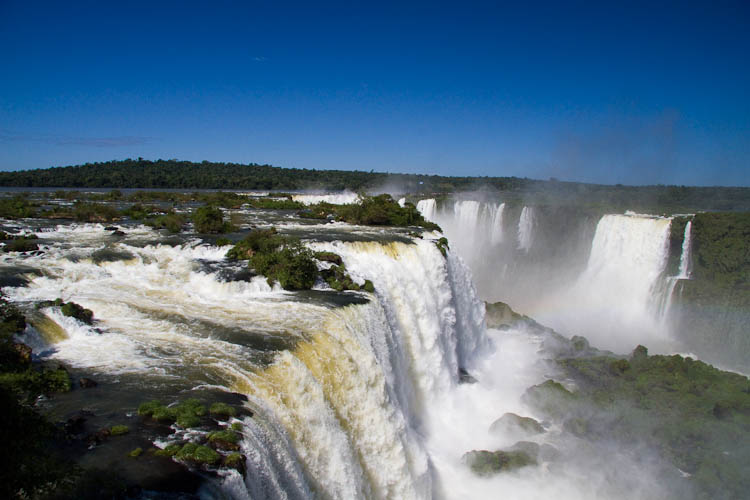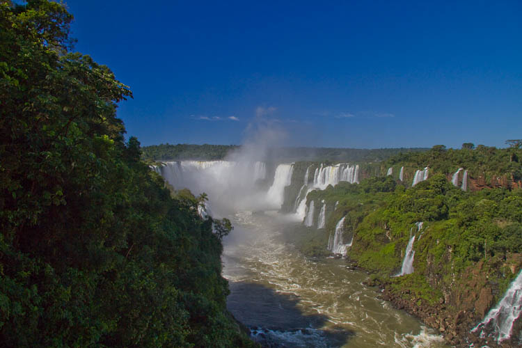 The most striking thing about Iguazu is the scale. This is not so much a water fall as a complex of water falls 3 km wide and 80 meters high. Indeed there are (according to the guide book) 275 individual waterfalls. The name Iguazu is a Guarani (local Indians) word meaning "great waters".
