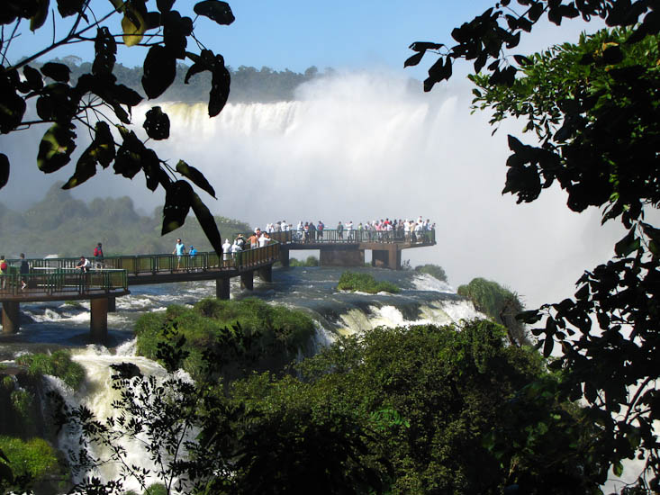 Once off the bus we followed a generally down hill paved walking trail that takes visitors like us from a distant view of segments of the falls down into the heart of the Brazilian side. At the end of this trail there is a catwalk out into the falls at Garganta Do Diablo. From this catwalk there are very intimate views of the first tier above and second tier below - not to mention an opportunity to get wet from the spray.