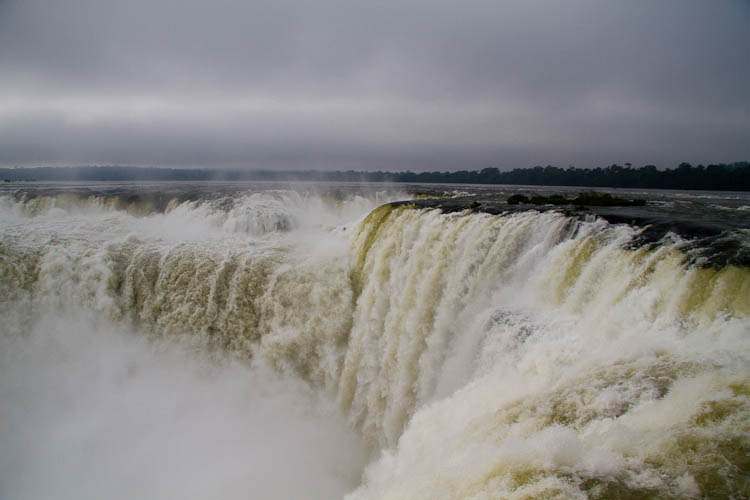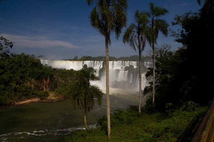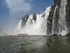 The bus for our tour to the Argentine side of the falls turned up a little early at 7:50, and off we went. It soon dawned on us that there would be no more passengers today and that this had turned into a private tour. The guide shepherded us through the border into Argentina and not long after 9:00 we were at the parque nacional, had bought our entry tickets and were on the mini-train that took us to the beginning of the 1 km walkway out to the top of Guargantua Diablo, the largest of the falls. We saw this same waterfall from below when we visited the Brazil falls. There was a light fog early in the day so we did not get very good photos of this fall.