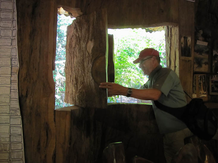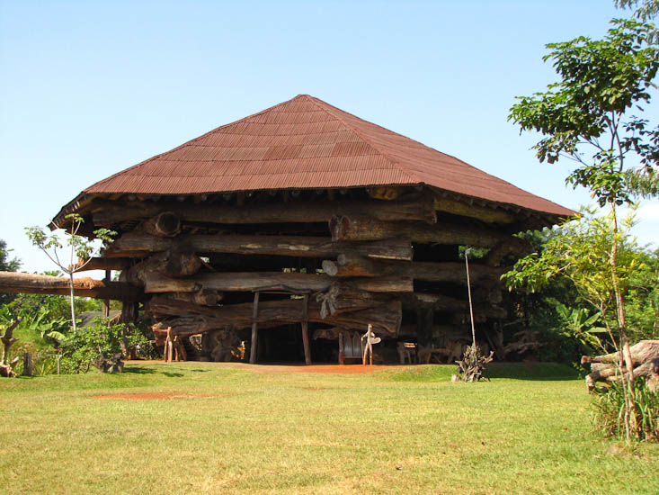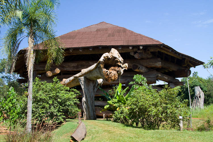 We talked the guide into bypassing the planned restaurant lunch and instead taking us to a place called Arepuca. This is a small jungle park with a large building made from even larger logs. Arepuca is the local indian name for a wild animal trap that looks like a small pyramid. The large building at the park was built like a large version of the same trap; it took 9 years to collect the trees for the construction and 1 year to build. We liked this place and its mate flavored ice cream.
