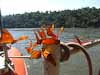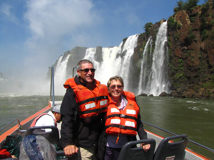 At 12:00 we made our way down to the rivers edge to take our boat ride. From the list of possible rides we had chosen one that took visitors out into the river and under two largish falls and then down the river below the falls to a mooring from where a truck returned us to park headquarters. It goes without saying that we got wet, the power of the falling water was enough to get through the best rain gear and up close the falling water is deafening. It was an exciting ride.