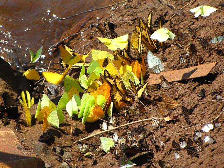 At the boat mooring at the end of the ride we say the most amazing group of butterflies, clustered on the river bank.