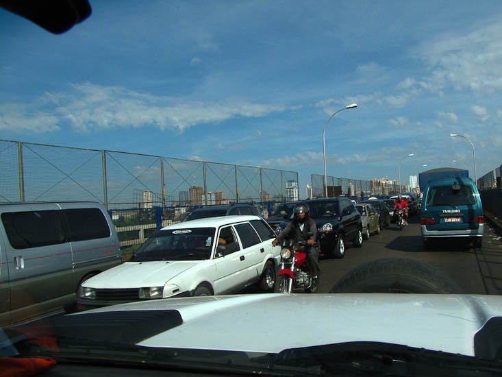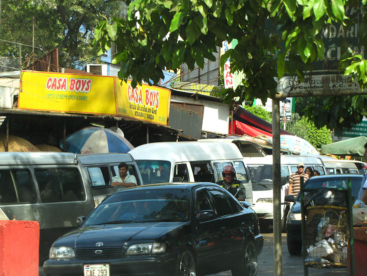 This morning we were again at the bridge over the Rio Parana going from Brazil to Paraguay. The crowds of pedestrians carrying large shopping bags of Saturday were gone, replaced by large numbers of trucks choking the bridge and its approaches.