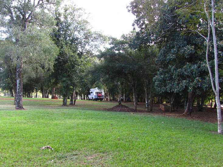 Park Parque Manantial, Hohenau. We heard about this place from other travelers. It is certainly one of the better campground we have stayed in on this entire trip. A shaded camping site, water and electricity at the site, two pools, very clean showers and toilets. It advertises its self as a country club, has a bar, restaurant, horse riding. When we arrived, on a Monday (Lunes), we were disappointed to note the sign cerrado lunes. But we eventually found someone and only the country club part is closed on Mondays not the camping.