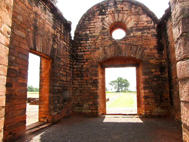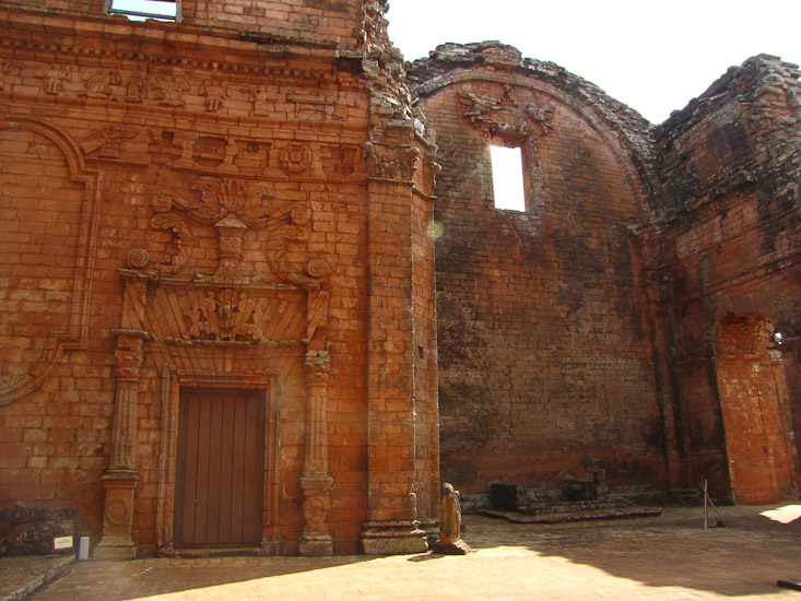 This morning we went off to look at some of the local ruins at the old Jesuit towns. The Jesuits arrived in the province of Paraguay in the early 1600's and set up a series of towns all with a common layout and construction. According to history they were very successful at converting and protecting the local Guarani Indians from Portuguese slavers. Apparently they were generally too successful as in the late 1700's the king of Spain expelled all Jesuits from South America.