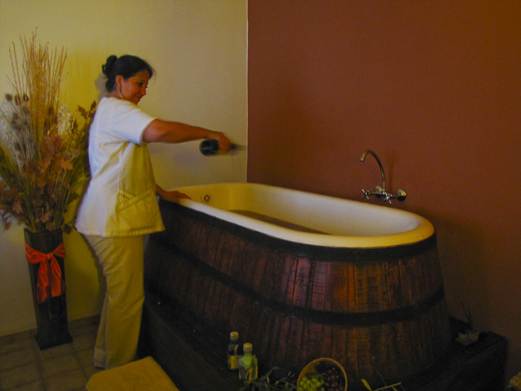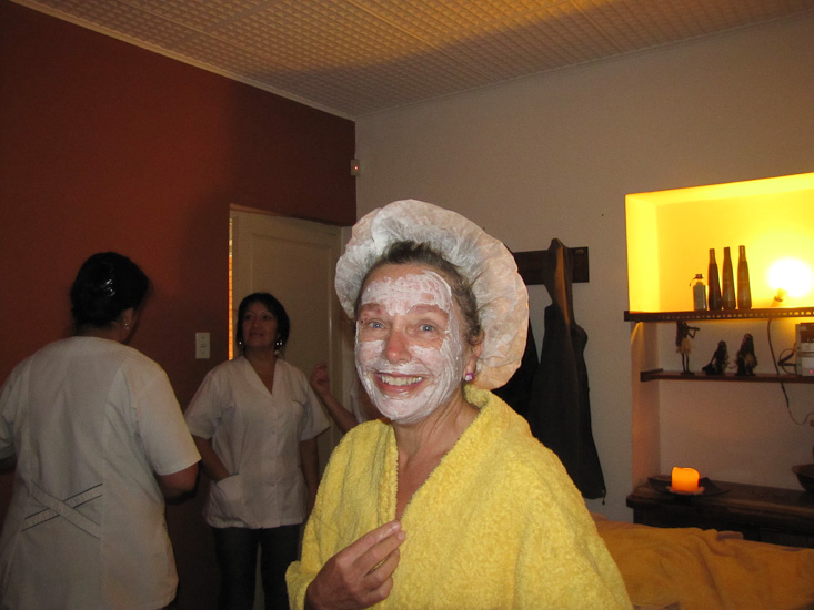 We had a wonderful time. The treatments, wine therapy for Nina and olive treatment for me, lasted over 3 hours and included massage with hands, massage with hot stones, a bath (in wine for Nina), facials - the works. Really relaxing and enjoyable - a real indulgence. After the treatment we were served wine, olives and various local products. And the owner of the Spa provided a place in the yard of her own house for us to park the Tiger while all this was going on. We would recommend this to anyone traveling through Mendoza. The Spa is in the same area as some of the more popular wineries - you will find details at www.kumelkanspa.com