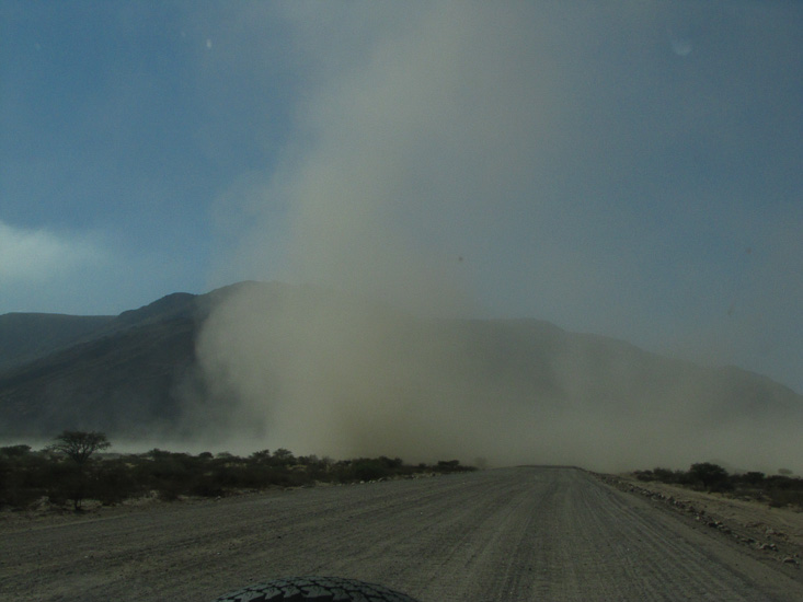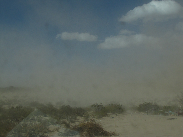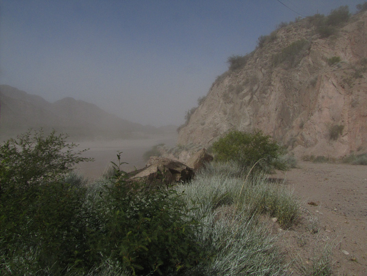 A little way north at the town of Belem we hit the first of the dust that would prove to be a signature of the day. A strong wind blowing down the river valley whipped up dense clouds of dust. Out of the valley onto the flat land the wind persisted for the rest of the day and we were treated to sporadic clouds of dust that at times obscured the road.