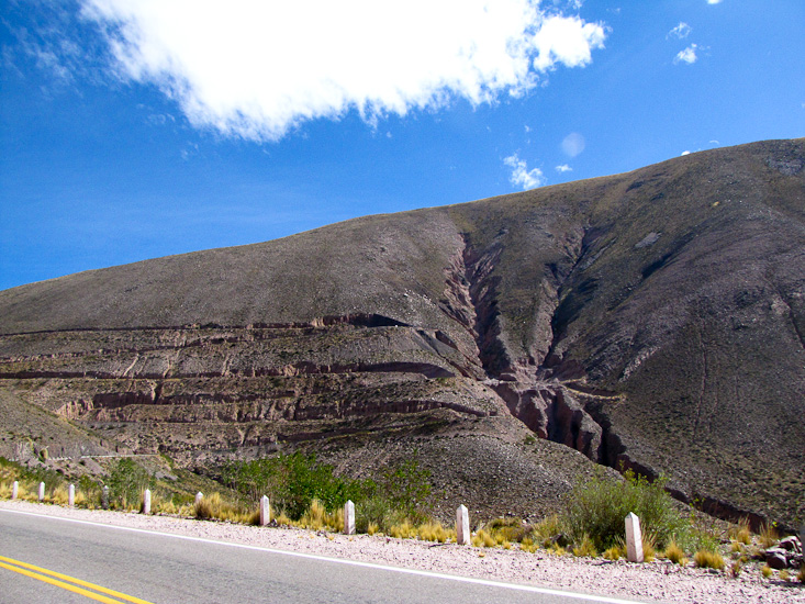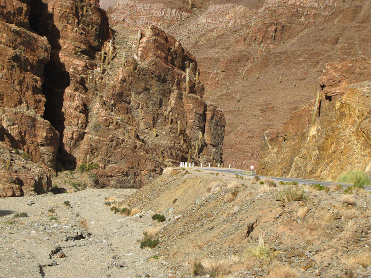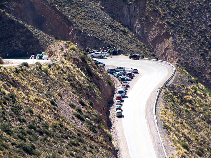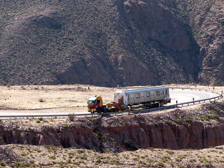 So today we left the very pleasant Tilcara and headed back up highway 52 onto the Andean Plateau, this required retracing the switchbacks we had descended about a week ago - still spectacular. Along the way we passed three large semi-trailers each carrying a railway carriage?