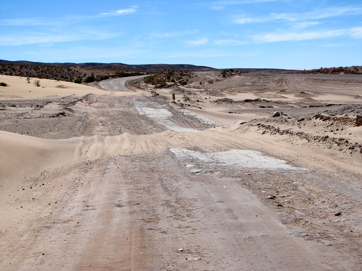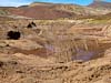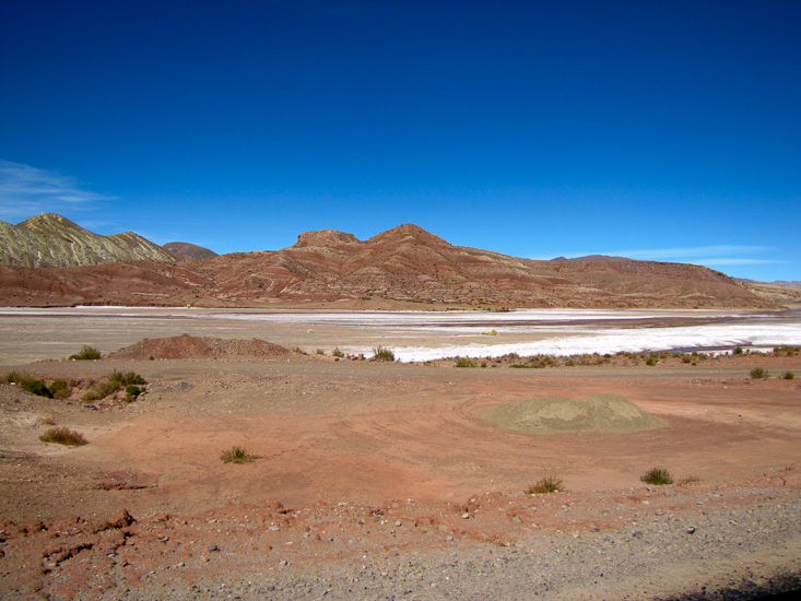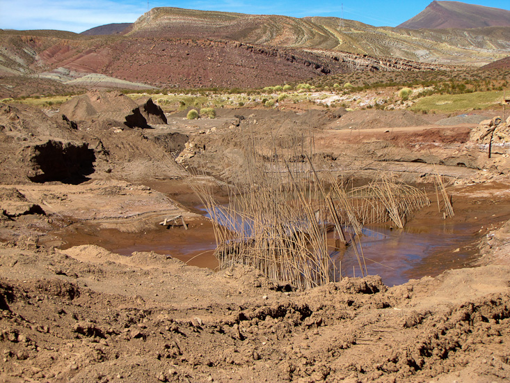 Heading east from Uyuni the road climbed to higher altitude initially giving some great views of the town and the salar. A little later we passed through a ghost town that was once a large mining settlement and still contains the remains of the locomotive shot up by Butch and Sundance in the robbery that ultimately led to their deaths. For the next 30 kms the road was a typical south america gravel road, rough but not terrible, and the scenery typical altiplano. For the remainder of the day we saw almost continual road works as gangs were upgrading the road. The work is far from finished and as a result the road varied from good quality blacktop to river beds where there were diversions. The scenery was really spectacular, big broad valleys, strange rock formations of wind/water carved sandstone, narrow and steep canyons, and even wetlands in some of the valley bottoms.