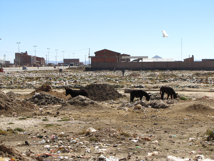Mid morning after traveling along the eastern side of Laguna Uru Uru for about 100 km we came into the town of Oruru. It was an ugly transport and mining hub with rubbish everywhere. For miles around and through the town every square foot of ground beside the highway had been used as a dumping place for building and domestic rubbish.