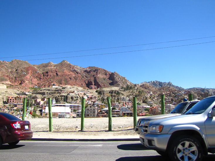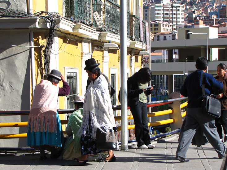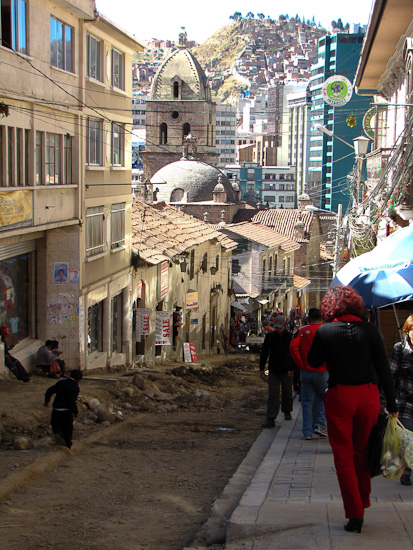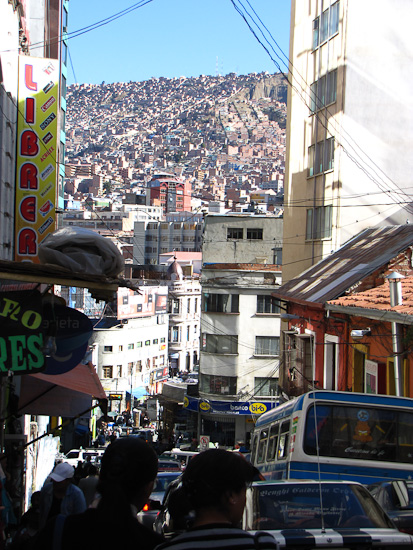 After a leisurely start to the day, with a shower and other chores to occupy us, we took a taxi into the city around lunch time. The ride was hair raising - the route into the city from Mallasa winds up and down the walls of the canyon in which the city sits, but this did not deter our driver he pushed his little Toyota sedan to its limit the entire journey with brake and tires squealing on corners and downhill sections.