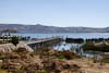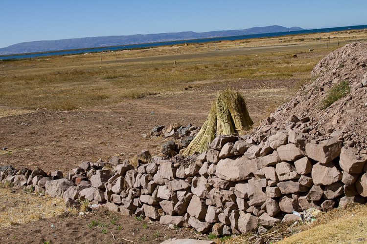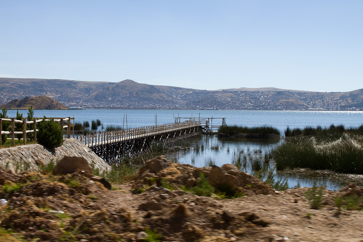 The lower parking lot of the Hotel Libertador. This is a 5 star hotel on an island in Puno harbor that is accessed by a causeway. It's a very up market establishment. A room is US$355. We would not have had the gaul to ask to park here if we had not read about it from others. The deal was that we had to have dinner in the restaurant. It was a nice dinner but if you are on a tight budget it will hurt - $100 for two people. There are no services, but it is without a doubt the best view in Puno.