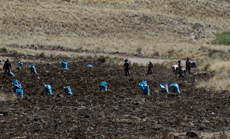 We drove down hill into the town of Uripa where we bought fuel. The gas station owner was evidently having a promotion to encourage customers and was giving a roll of toilet paper to each customer. What a bonus!!. Further on we passed through the town of Chincheros before completing the descent to the Rio Pampas. This is a large river in a broad valley and was really quite beautiful in the morning sun.