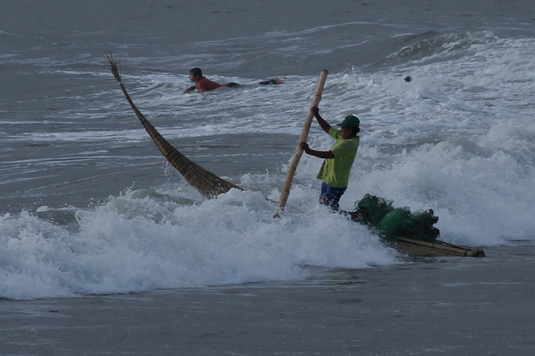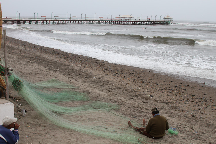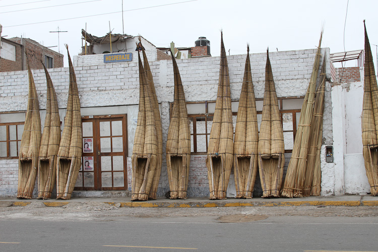 Today we had a quiet day in Huanchuco. We spent some time walking along the beach front watching local fishermen in their little reed boats (called Caballitos) paddle out through the surf to set or check their fishing nets. Apparently the locals have been using this type of craft for at least 2500 years. Though on closer inspection we did note at least one modern modification to the boat - they now pack styrofoam into the center of the boat to reduce the quantity of reed required. Similar to the way coke bottles are used by the people on the floating islands on Lake Titicaca.