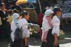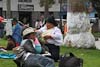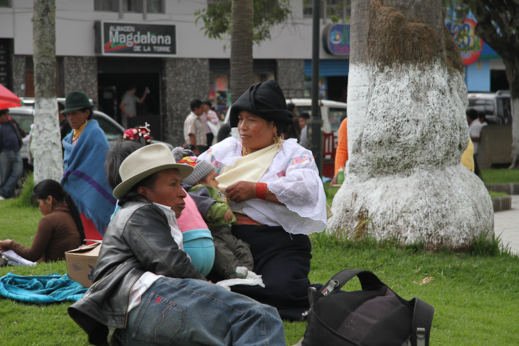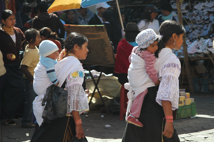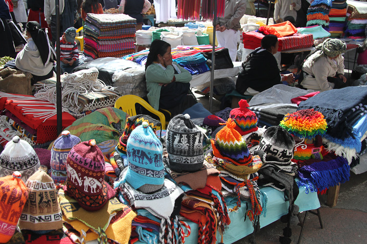 A little more shopping today. The excuse was that we needed another nylon bag in which to pack all the things bought yesterday; but once in the market area more woven goods soon started piling up. Nina also took the opportunity to take a few more photos of the local women in the traditional dress. It's quite different to Peruvian clothing. Head ware is typically some form of cloth wrapped around the head, the dress is a long narrow skirt. Babies are still carried on the back but here the cloth wrapping them is white not a multi colored stripe.