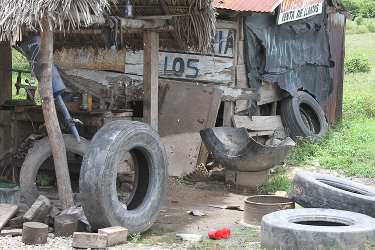 The driving was easy for most of the day with the road flat and relatively straight as it traveled through very wet jungle lowlands and variously cattle, banana, and palm oil farms. However each village along the way presented large speed bumps to slow down the passing traffic. I am sure the justification was to provide some safety for local residents but in practice it looks more like the speed bumps are so that vendors get a chance to display their wares to passing traffic. For much of the day the villages were infrequent and the inconvenience from these speed bumps small. But as we got closer to Santa Marta the small villages appeared with increasing frequency and as a result the bumps really inhibited traffic.