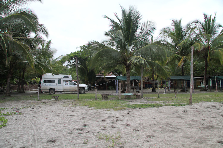 So we found something else - Camping Aloha. As you enter the town of Samara take the right turn towards Ostional. The long entrance road is about 200 yards along on the left. The place has water, electricity and cold showers. Because it's the wet season we were able to park right on the beach front. It's a great location but the place is a bit run down. Like the town generally.