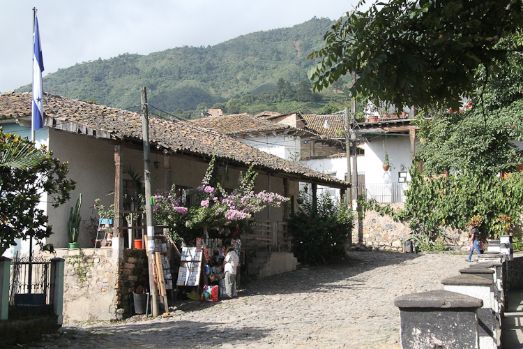 The morning was a pleasant drive through hilly country with small pine forests dotting the hill sides. We took a short side excursion to the small village of Yuscaran noted in the guide book as a good example of a colonial mining town. It was perched on the side of a hill and had narrow cobblestone streets that made driving into the central square a bouncy affair.