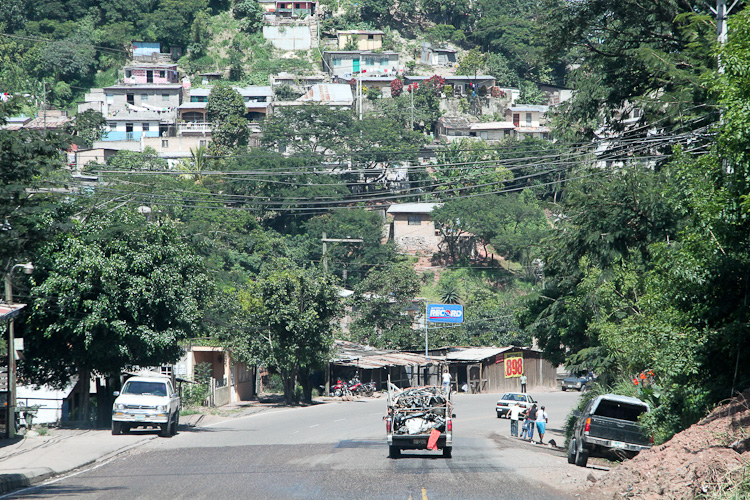 Back on the main road we eventually found ourselves at the North East entrance to the capital Tagucigalpa (pronounced Tah-goosee-galpa, nick named Tegus by the locals). As we entered the city we had good dual carriage way roads and passed a number of modern gas stations and shopping malls. The roads even had signs directing us to our next destination San Pedro Sulu. But then the dual-carriage road just stopped and all traffic headed off into a tight little side street. It felt like a different city. We spent the next hour winding through tight, severely pot-holed streets, squeezing around buses and trucks, and navigating by GPS and guesswork. We agreed afterwards that this was one of our more difficult city transits.