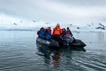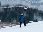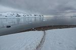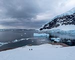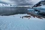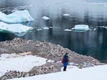 This morning we made a landing at Neko Harbor a small beach in Andvord Bay on the west side of the Antarctic Continent. The harbor is named after a Scottish Whaling ship which operated in the area between 1911 and 1924. We landed on the small beach south of a huge glacier, observed the Gentoo penguin colonies that occupy the small number of rock out croppings, and walked up a large snow slope on the southern side of the harbor. For the more adventurous of the guests this snow slope offered the opportinty to do a bit of bum-sliding down the steep face of the snow ridge. Nina, my guardian angle reminded me that this activity was probably not for me as I am still only 6 weeks into recovery from neck surgery.
