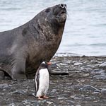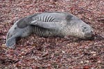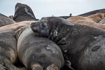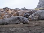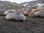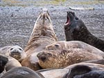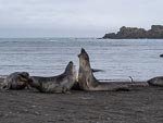 This morning we made a landing on Elephant Point, which is a small outcropping on Livingston Island, which in turn is part of the South Shetland group of Islands. The point was once a camping and hunting location back in the days of the seal oil trade. Today there is only some remains of an old sealers hut. There is almost no snow on this piece of land so that animals are more prevelant. In the photos below you will see a number of groups of male Elephant Seals which from time to time get involved in pushing matches to test their strength, an interesting demonstration of the way these guys fight. There are also some large colonies of Gentoo penguins many of them nursing young.