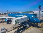 Hanoi International Airport is new having been openned in 2015 along with a new 6 lane highway into the city of Hanoi, and a new bridge over Hanoi's Red River. The bridge is extensively lighted and together with the neon lighted skyscapers in the background gave a strong first impression of the city.