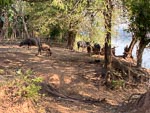Today was a travel day, we left La Folie Lodge for a flight to the Northern Laotian town of Luang Prabang. Thus we spent most of the day waiting either in airports or sitting on planes. However the ever unrepressible Nina was up early getting her last walk around the island. The center part of Don Daeng Island is devoted to agriculture and livestock, as can be seen in the first 6 photos below. Photo 2 is rice fields waiting for the wet season to come to life, photo 3 is a water storage pond that is part of the wet season irrigation system. The final Don Daeng photo is a freshly planted tapioca field. If you look very carefully (maybe with imagination) you can just see short sticks poking up out of the ploughed soil; they are tapioca seedlings that have recently been planted.