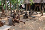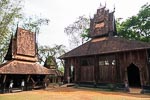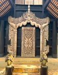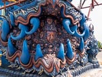 The second destination of the day was in its own way just as mind blowing as the White Temple. It is the former residence of Thai artist Thawan Duchanee who is deceased, and the property is managed by his family under the name Baandam Museum. So what is there to see at this museum. The property consists of a peaceful forest setting with as many as 40 buildings in various styles from eleborate timber constructions to modern formed concrete buildings that look like spaceships. Many of the buildings are open to the public and are displays of Thawan's art in the form of paintings and decorations of the buildings. Much of the decoration incorprated animal hides, horns, large sea shells. He also seemed to have an affinity for the male phalus. A bit weird in some ways but wonderful wood carvings.