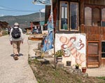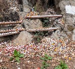 We lunched in the small village of Lobeysa and after eating we walked through local rice fields and vegetable gardens to a monastry called Chhimi Lhakhang, which is seen by Buddhists as a fertility shrine and is visited by childless couples from around the world. In support of this reputation the local village has on display hundreds of carved or painted quite life like phalluses which the visitor can buy. The origin of the of the monastry is connected to a religious story involving demons in Dochula Pass turning into black dogs, one of which is said to be burried under the stupa at Chhimi Lhankhang. The details are in the link above.