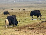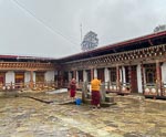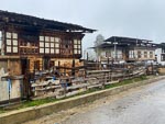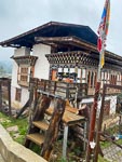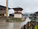 This morning we drove a short distance up out of the valley to the small village of Gangtay to visit a temple named Gangtay Gonpar. It is an impressively large building sitting at the end of a ridge line overlooking the Phobjikha Valley. After the temple we spent a little time exploring the village, one of its general stores (quite well stocked) and the moss growing on the nearby cypress and pine trees. While walking around the village the rain turned, for a short period, into snow/sleet. Later we noticed a spinkle of new snow on the trees higher up the slopes.