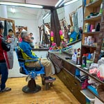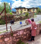 There was no organized sightseeing today. It was a day to recover from yesterdays climb and to spend the little energy we had just generally looking around the town of Paro and taking photographs of random but interesting things; such as meat lying on the counter in the butcher's shop, Rob getting a haircut, a man fixing the road with a hand trowel, a horse parked in the middle of the road.