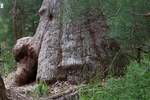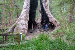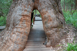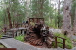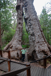 The photos above show one of the characteristic features of Tingle trees. The size (huge) and the hollowed out base. The timber in the Tingle trees is very strong so that the tree can still stand and live even with the core of its base hollowed out by fire.