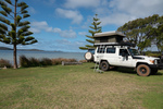 Panorama Camp Ground west of Albany. This is the first camp with a shower and we were certainly ready for that. Very European in style, a single dump station that worked only for cassette toilets. A number of central power polls for electricty that required the use of a very long electrical cable. A common cooking shelter with gas stove, hot water and non-working micro-wave oven.