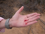 Not to be out done I managed to take a slide on some gravel while closing a cattle gate and ripped the skin on my right arm. The problem with getting old is that ones skin is not as tough as it once was so what would have been a minor event 20 years ago now "bled like a stuck pig". Later in the day the nurse at the Medical Clinic in Coolgardie patched me up with some fancy "fake skin" called fixomull and a tetanus injection. All free.